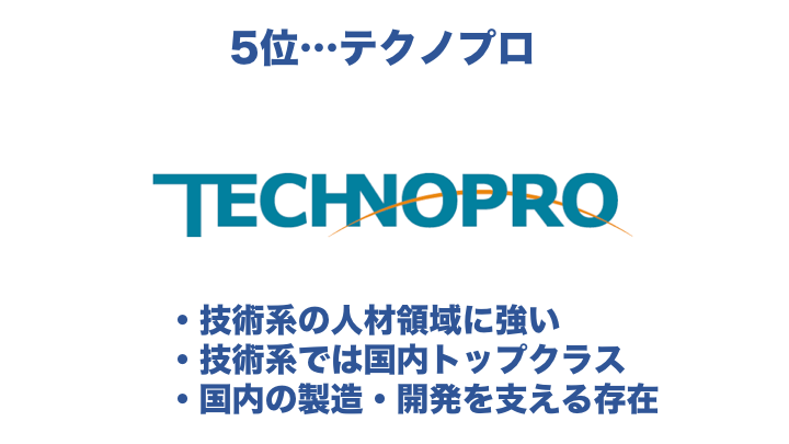 国内産業の専門領域をほとんど網羅しているため、技術系の人材サービスグループの中ではトップクラスのシェアを誇っています。総合型に比べれば事業規模などは小さくなりますが、特化型ならではの強みを活かして高い競争力を有している良い例です。